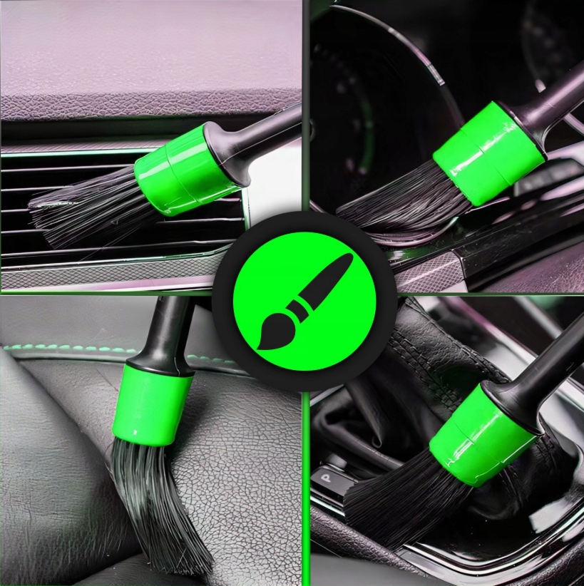 Это полный набор аксессуаров для чистки салона и кузова вашего автомобиля, созданный с учетом точности, эффективности и комфорта использования.