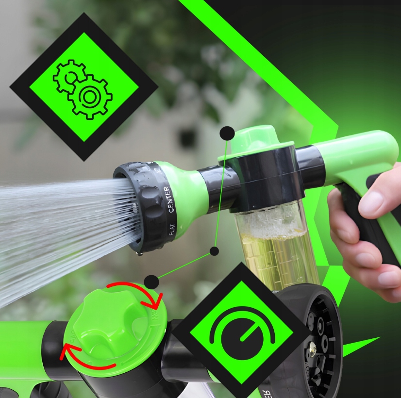 Благодаря различным типам щеток, щеток и насадок - вы достигнете даже самого лучшего труднодоступные места, а пенный пистолет обеспечит тщательную мойку с эффектом глубокой пены.