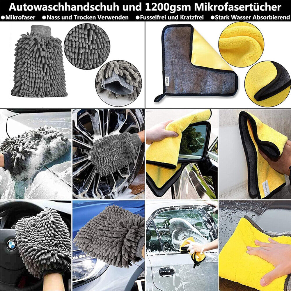- Перчатка для мытья автомобиля из микрофибры и салфетка для полировки автомобиля: комплексные средства по уходу за автомобилем из микрофибры, мягкие, без пятен и царапин. Чрезвычайно высокое водопоглощение. Очищает автомобиль особенно бережно. После впитывания пыль больше не трется о поверхность, что сводит к минимуму риск поцарапать лакокрасочную поверхность.