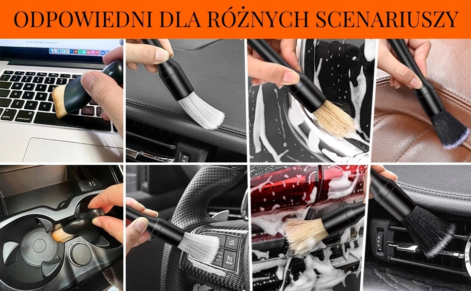 Универсальное использование. Этот набор из 5 автомобильных щеток различных форм и размеров позволяет эффективно очищать все участки вашего автомобиля. Различные щетки идеально подходят для очистки приборной панели, вентиляционных отверстий, центральной консоли, подлокотников и промежутков между сиденьями. Кроме того, их также можно использовать в качестве инструментов для чистки других предметов, например компьютерных клавиатур.