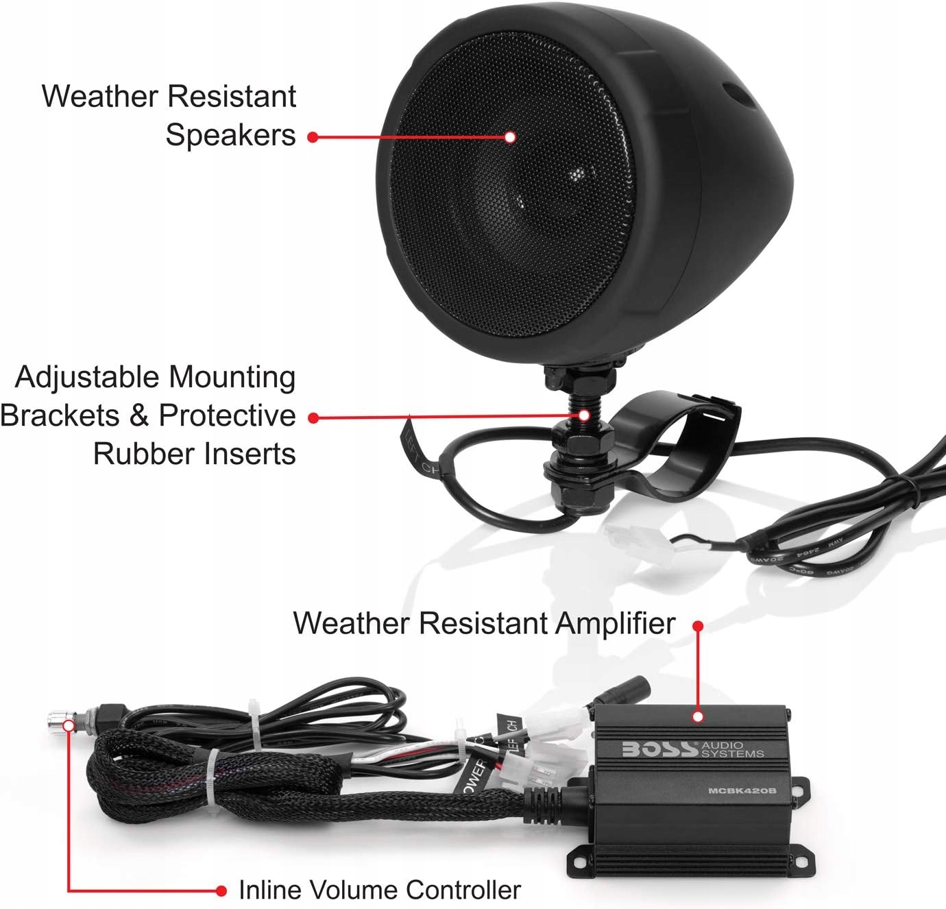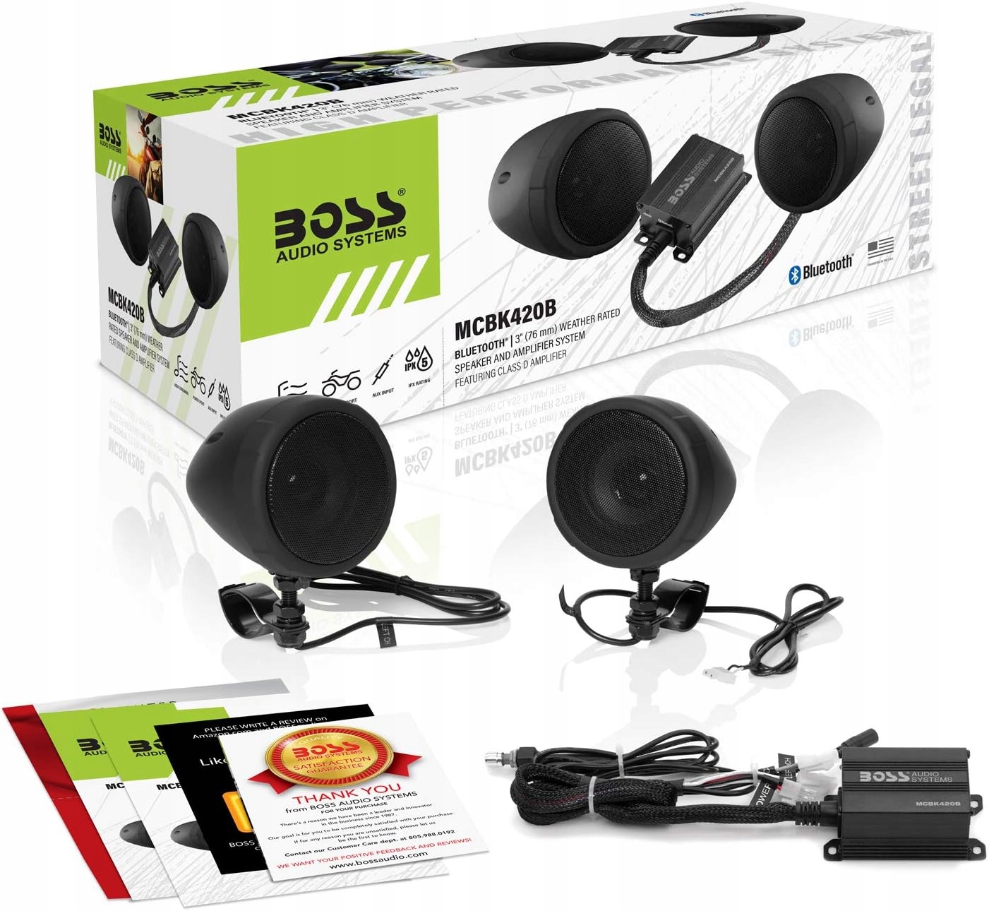 Усилитель: набор включает в себя компактный, устойчивый к погоде класс усилителя Bluetooth.