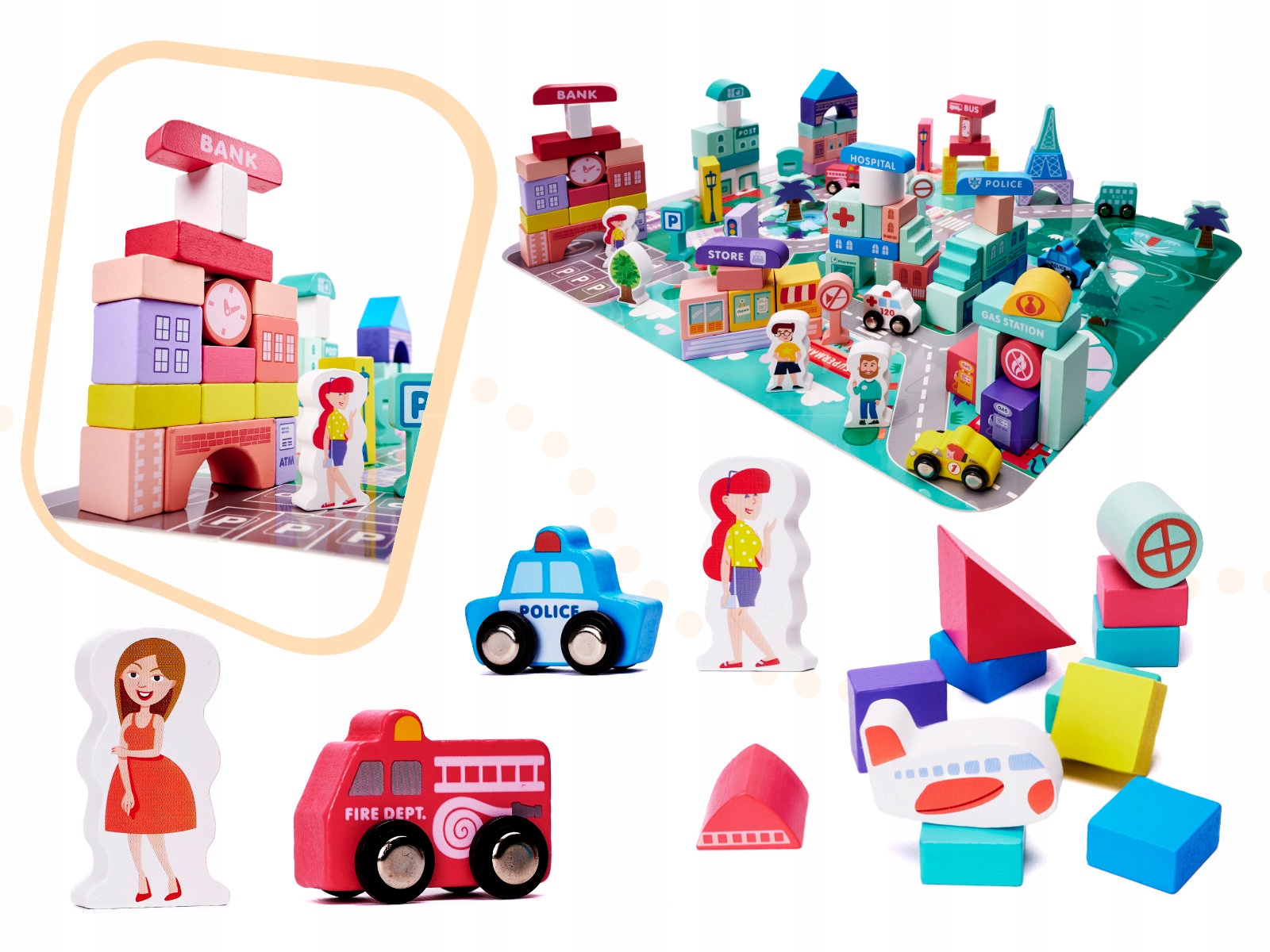 <ул> <ли> Здания- банк, полицейский участок, больница, почта <ли> Растения- деревья <ли> Транспорт- полиция, пожарная команда, скорая помощь, машина, самолет <ли> Письма и цифры- размещается в более мелких блокахРазрешите мне позвольте вашему ребенку почувствовать себя настоящим архитектором и насладиться собственными проектами проекты.