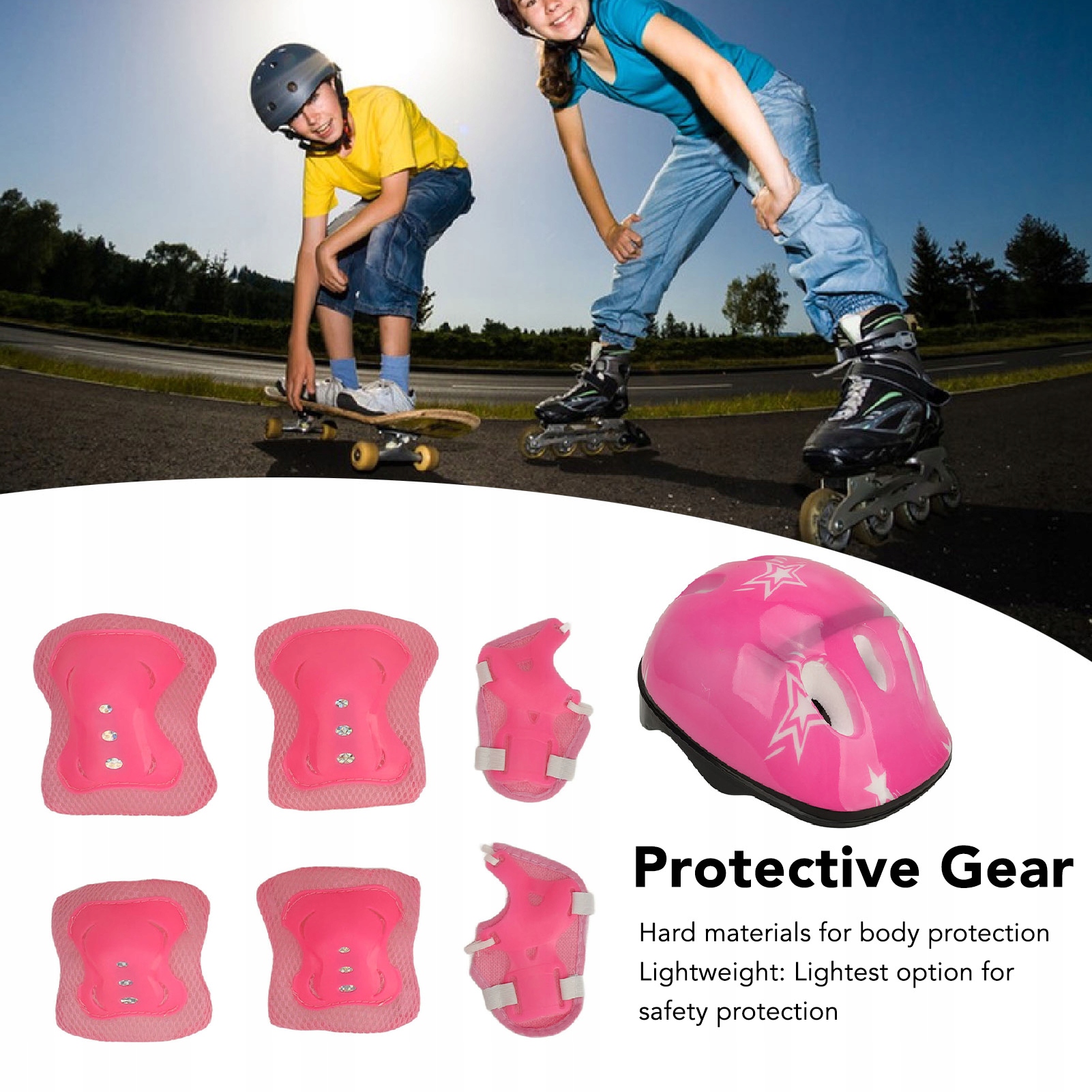 4. Полная защита: это регулируемое защитное снаряжение обеспечивает всестороннюю и превосходную защиту. В комплект входят шлем, наколенники, налокотники и защита запястий, обеспечивающие беспроблемные занятия спортом на открытом воздухе.