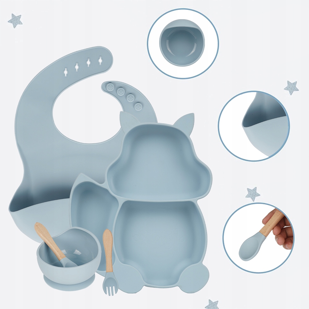 НАБОР ДЕТСКОЙ СИЛИКОНОВОЙ ПОСУДА ИЗ 5 ПРЕДМЕТОВ БЕЗОПАСНОСТИ