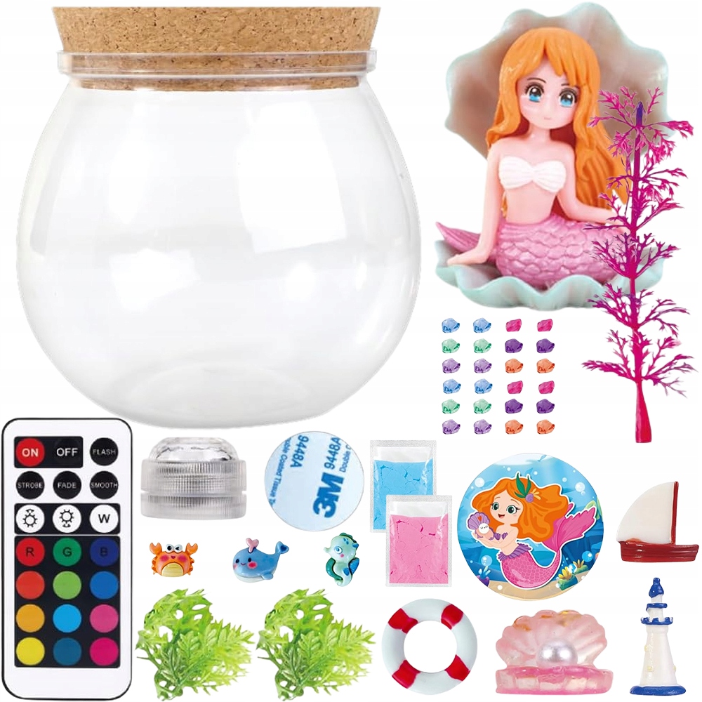 Преобразуйте комнату ребенка в подводную миру русалки благодаря удаленной светодиодной лампе. Объедините магический песок, мохи и статуэтки, чтобы создать завораживающее украшение, которое порадовает всех!