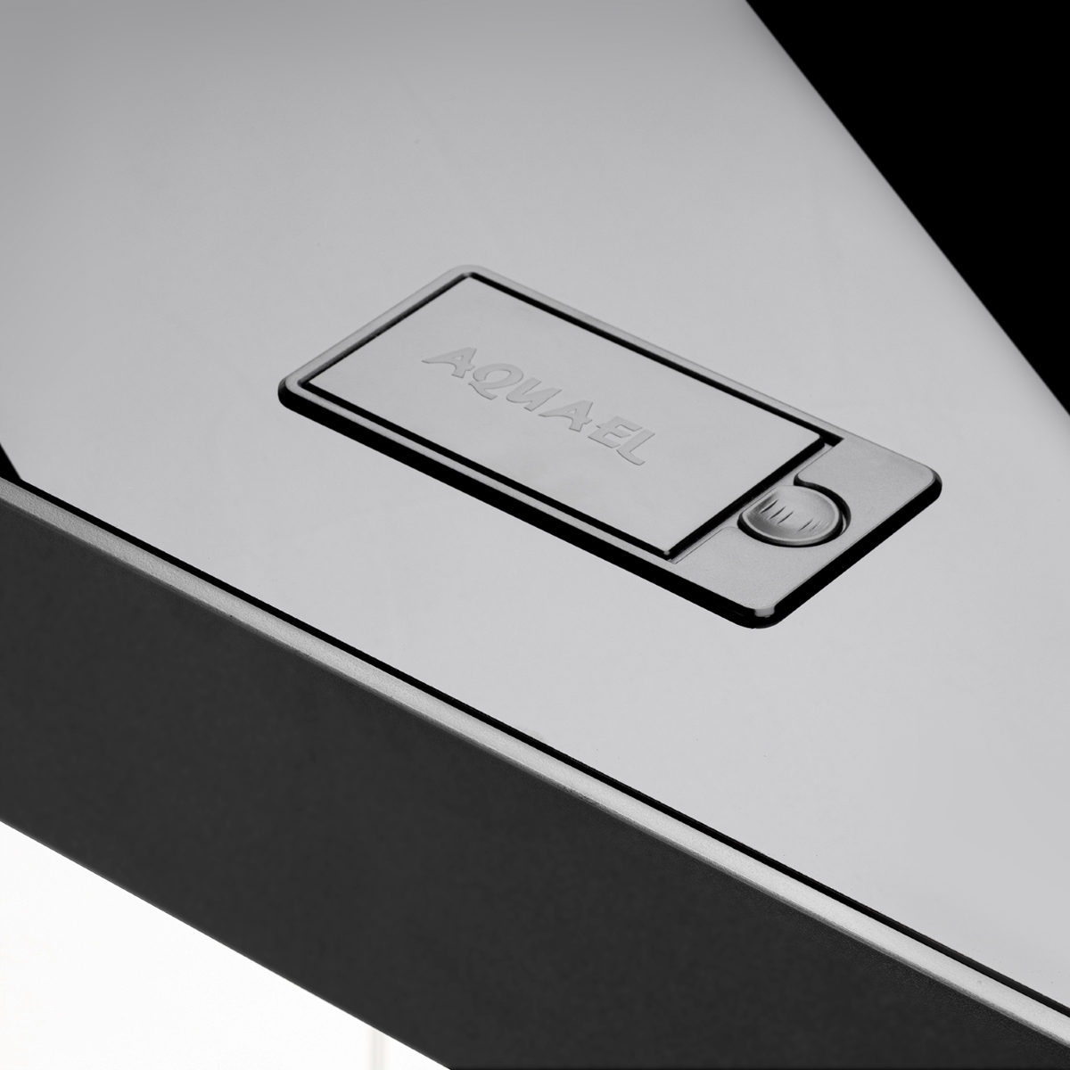 Минималистический вид и, как и рамка, сатиновая отделка крышки позволяют аквариумному набору идеально вписаться в любой интерьер. Он станет прекрасным украшением современной дизайнерской гостиной или офиса. Крышка бака скрывает в себе несколько интересных решений. Удобная створка дает нам легкий доступ к внутренней части аквариума и возможность свободно маневрировать внутри него. Запатентованная система Smart Open, встроенная в конструкцию, позволяет ее наклонять и останавливать в нужном положении без необходимости использования опор. Открыв его, мы увидим две поперечные направляющие, на которых покоятся две светодиодные трубки Aquael Leddy Tube Sunny Day & Night 2.0, каждая мощностью 10 Вт. Их также можно поднять, полностью открыв внутреннюю часть резервуара. Рейлинги позволяют быстро менять положение светодиодных трубок и освещать выбранную зону расстановки. Они также позволяют расширить освещение еще 7 трубками Aquael Leddy Tubes. Этот набор удовлетворит потребности даже самых требовательных растений.