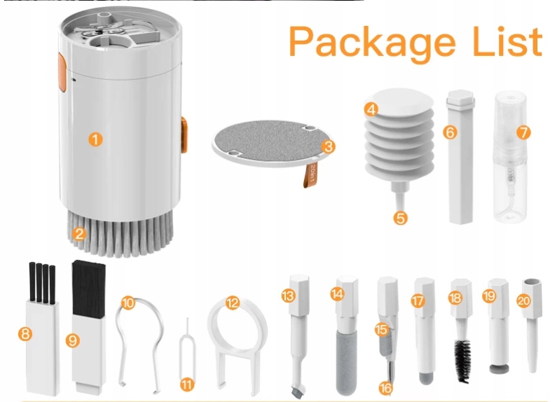 Несколько щеток:Щетки разных размеров подходят для чистки электронных изделий и других мелких щели, до которых трудно добраться.