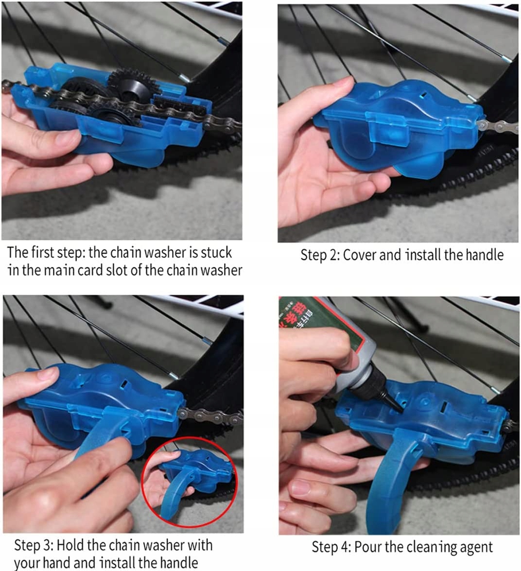 Приспособление для чистки с эргономичной ручкой: этот инструмент для чистки велосипедной цепи можно использовать для большинства приводных цепей и щеток, он очищает и ухаживает за каждым звеном цепи. Эти щетки для чистки велосипедной цепи тщательно очищают звездочку, звездочку, переключатели и тормоза. Комплект для очистки велосипедной цепи: включает в себя 1 устройство для очистки цепи; 3 щётки для цепей с нейлоновой щетиной для звеньев велосипедных и мотоциклетных цепей.