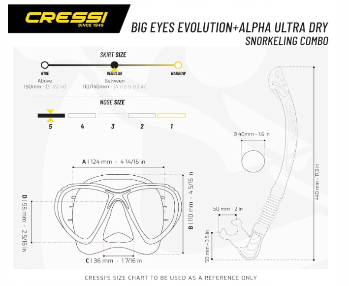 Маска Cressi Big Eyes Evolution и трубка Alpha Ultra Dry — комбинированный набор для дайвинга и сноркелинга, один размер, унисекс для взрослых