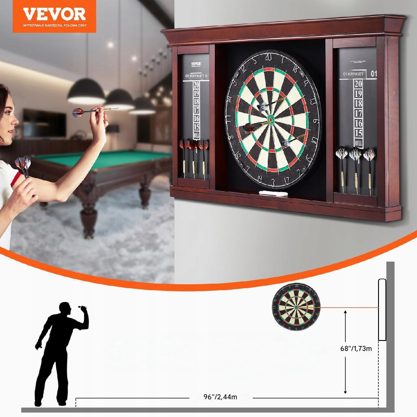 Доска для дартса диаметром 18 дюймов (приблизительно 45,7 см). Набор легко собирается и обеспечивает устойчивость во время интенсивной игры. Размеры всего комплекта адаптированы к домашнему интерьеру, а навесной шкаф хранит все аксессуары в одном месте.