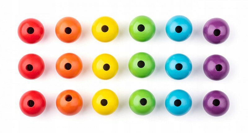 - 18 круглых бусин (по 3 цвета: красный, оранжевый, желтый, зеленый, синий и фиолетовый)