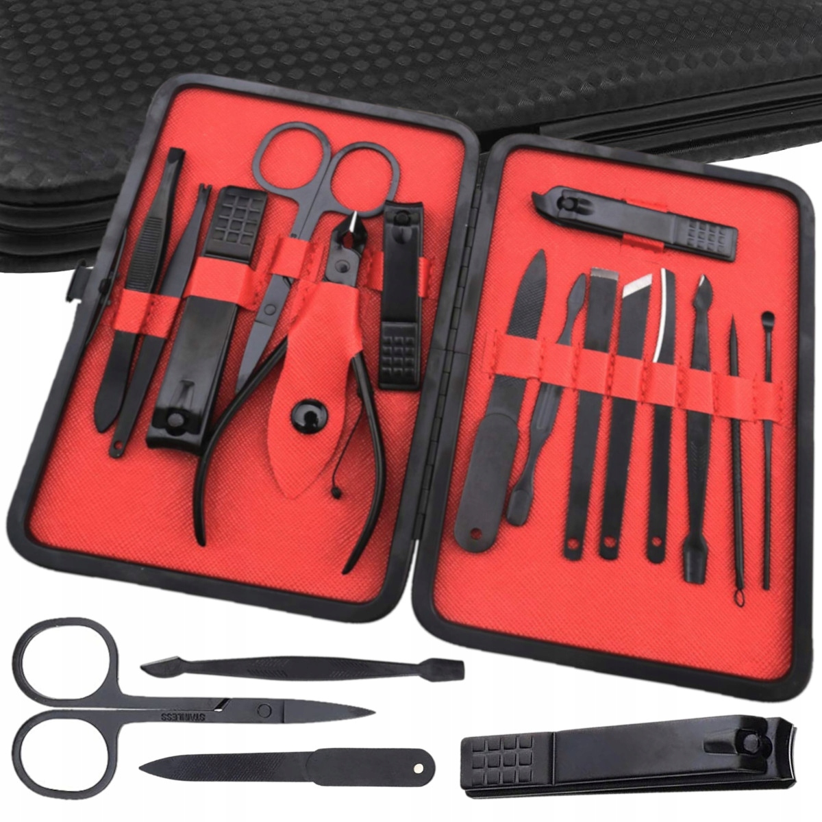 Весь маникюрный набор состоит из 16 элементов, элегантный и прочный дизайн каждого инструмента вместе с футляром обеспечивает длительное время использования.