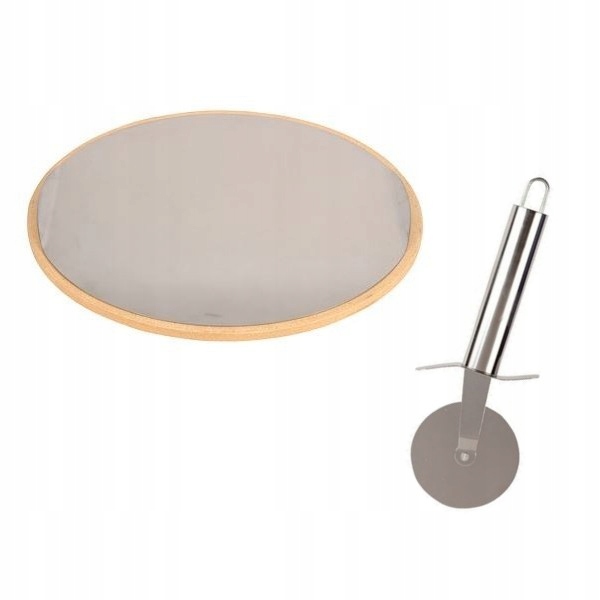 В комплект входит керамический камень диаметром 33 см, противень из нержавеющей стали меньшего диаметра, что позволяет удобно размещать его на камне, и круглый нож для пиццы.