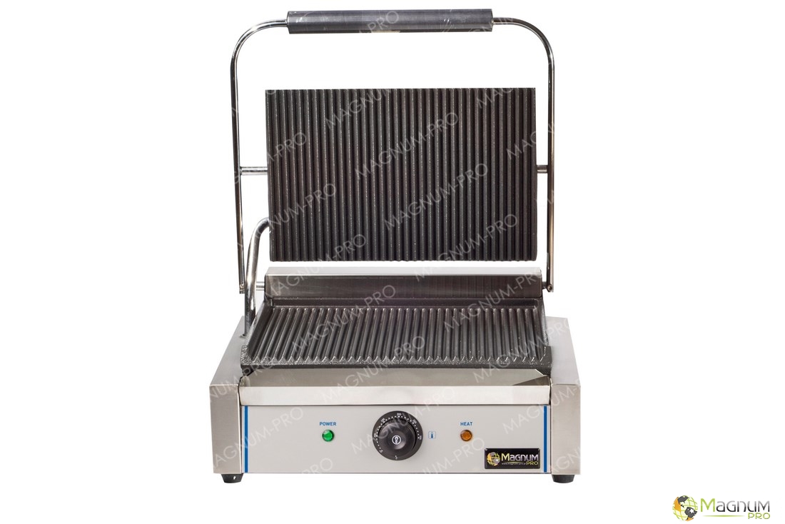 Корпус изготовлен из высококачественной нержавеющей стали, за которой очень легко ухаживать и содержать в чистоте. Чугунные нагревательные пластины покрытые антипригарной эмалью. Гриль имеет термоизолированную ручку. Устройство стоит на 4 нескользящих ножках.