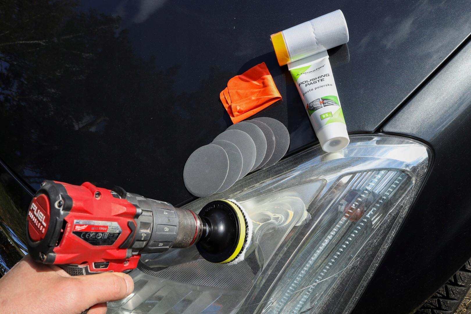 - полировальная паста - диск на липучке для шлифовального диска