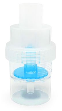 Небулайзер имеет удобную шкалу для облегчения дозирования лекарства и закрывается резьбой среднего шага, что позволяет точно нажимать на крышку.