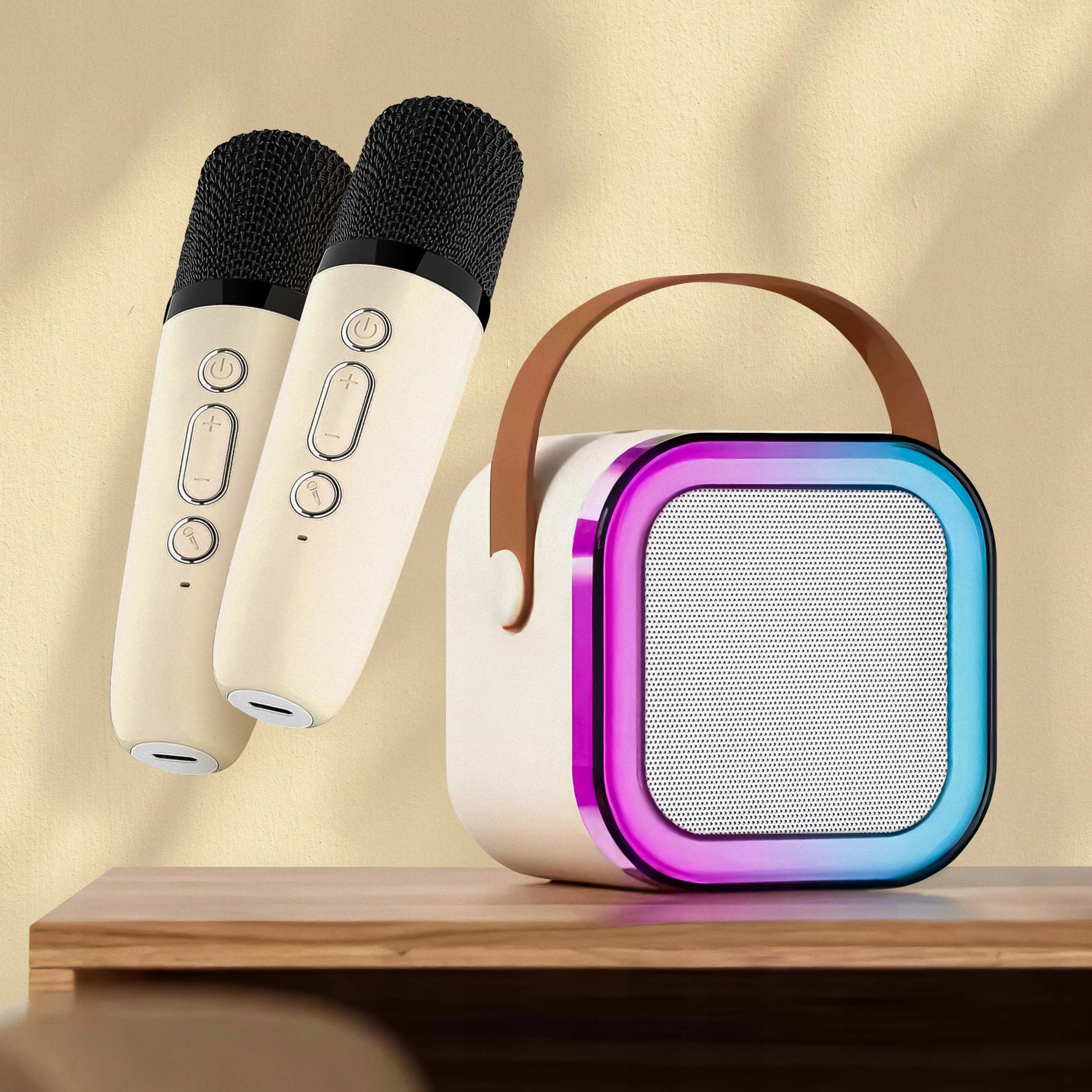 Поднимите свои вечеринки на новый уровень с нашим караоке-набором, который гарантирует незабываемое веселье! Этот компактный Bluetooth-динамик и два беспроводных микрофона — идеальное решение для всех, кто любит петь и веселиться. Благодаря мощному и чистому звуку динамика каждая песня будет звучать профессионально, а портативный дизайн позволяет легко разместить его где угодно — в гостиной, саду или на пляже.