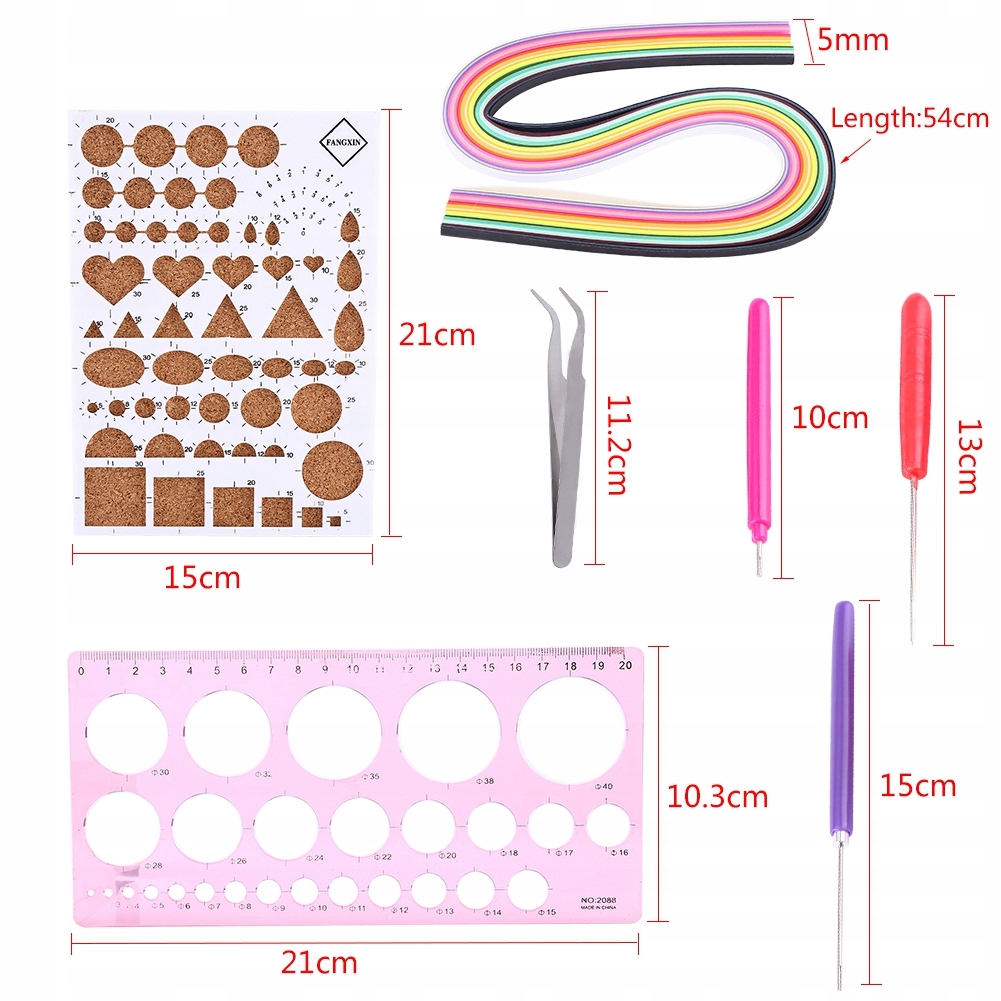 3. Шаблон для квиллинга и линейка для квиллинга позволяют создавать разные фигуры разного размера