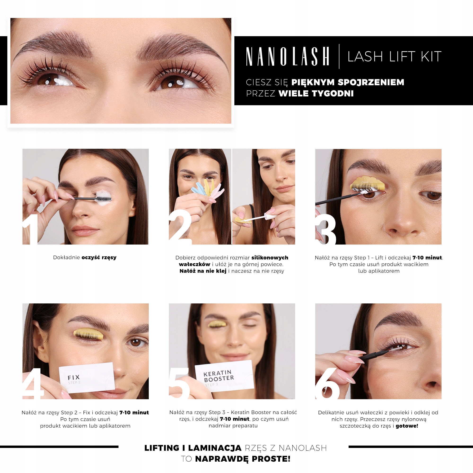 Вы мечтаете о точно разделенных и подкрученных ресницах каждый день? Хотите добиться впечатляющего эффекта с помощью нескольких простых аксессуаров? Откройте для себя секрет потрясающих, приподнятых и блестящих ресниц – познакомьтесь с набором для лифтинга и ламинирования ресниц от Nanolash, который легко позволит вам добиться результатов вашей мечты.