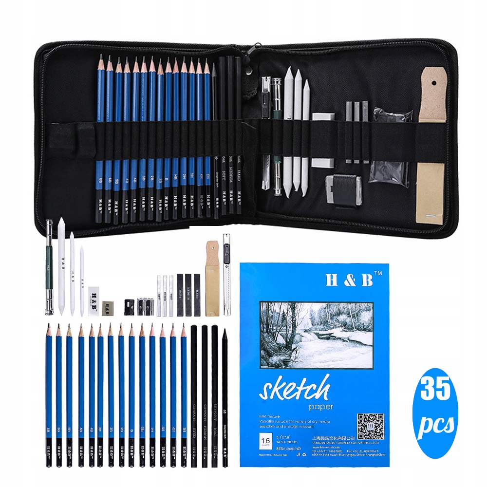 - 35 наборов карандашей H&B, включая графит, уголь, мягкие карандаши, бумагу для рисования и ластик. Наиболее подходящий инструмент для рисования, создания эскизов и письма, отвечающий потребностям начинающих и профессионалов.