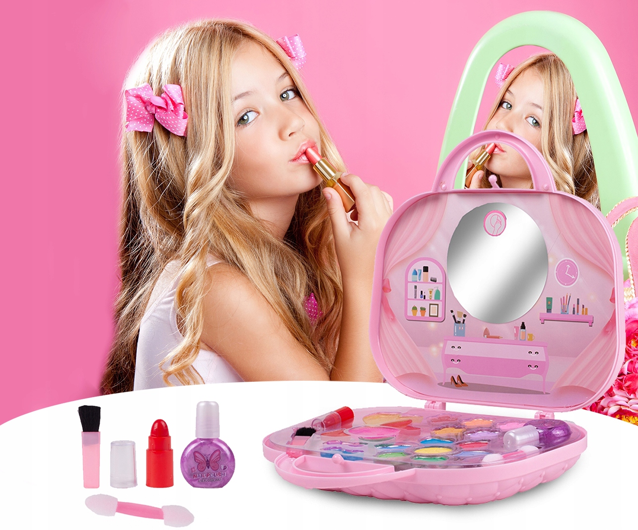 НАБОР ДЕТСКОЙ МАКИЯЖНОЙ КОСМЕТИКИ В ЗАКРЫТОЙ СУМКЕ С ЗЕРКАЛОМ