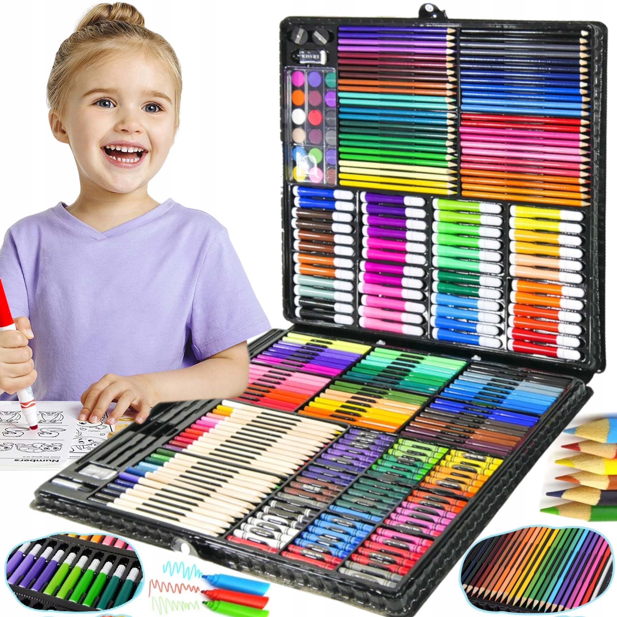 - Развивающий воображение и художественные навыки, набор мелков, фломастеров, красок и пастели надолго творчески украсит времяпрепровождение малыша часы. Идеальная альтернатива для родителей, которые заботятся о развитии своих детей, независимо от технологических новинок.