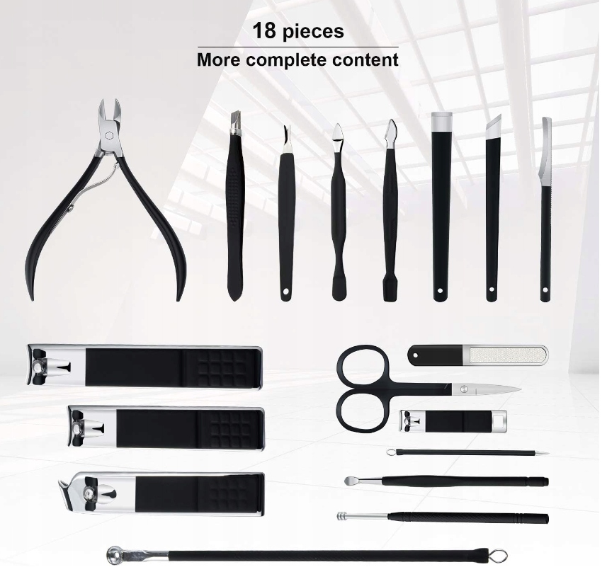 - Многофункциональность: в набор профессиональных кусачек для ногтей входят 18 инструментов для ухода за руками, лицом и ногами, отвечающие всем вашим потребностям. Не нужно дополнительно покупать маникюрные, педикюрные, кусачки для ногтей, пилочку, ножницы и т. д. С этим набором вы сможете сэкономить и обеспечить комфорт.