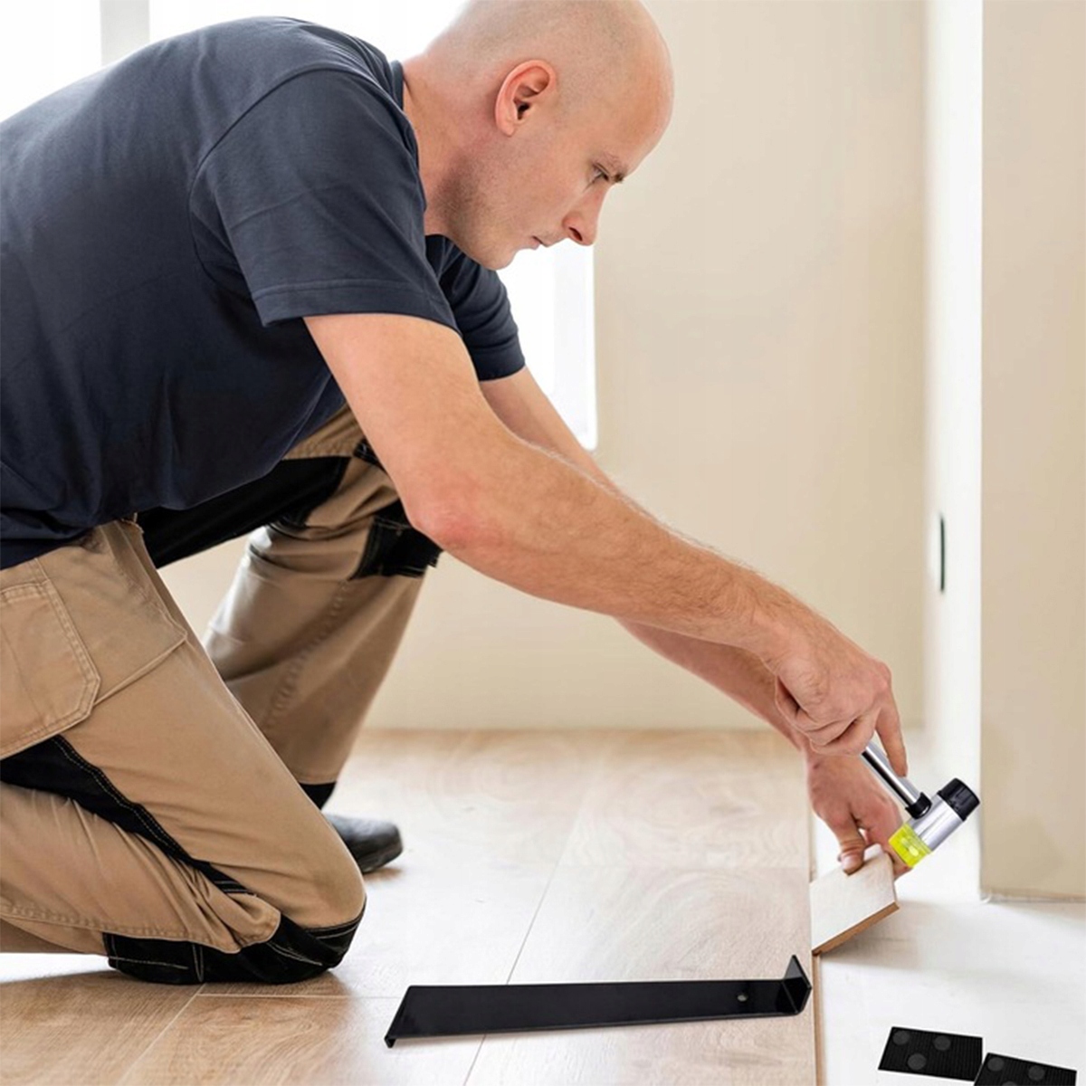🌟⚒️БЕЗОПАСНАЯ И ПРОЧНАЯ КОНСТРУКЦИЯ ИНСТРУМЕНТА: Молоток с резиновой ручкой имеет двойную головку, которая слегка ударяет по уложенному полу, чтобы обеспечить безопасную установку без повреждения поверхности. Головка молотка из ПВХ и стальная ручка делают его прочным и простым в использовании, обеспечивая надежную безопасность при длительном использовании.
