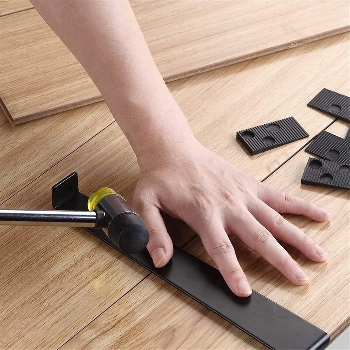 ➡️Наш ударный блок для этих инструментов для укладки ламината изготовлен из толстого полипропиленового пластика, чтобы предотвратить повреждение ламината и паркетных полов.