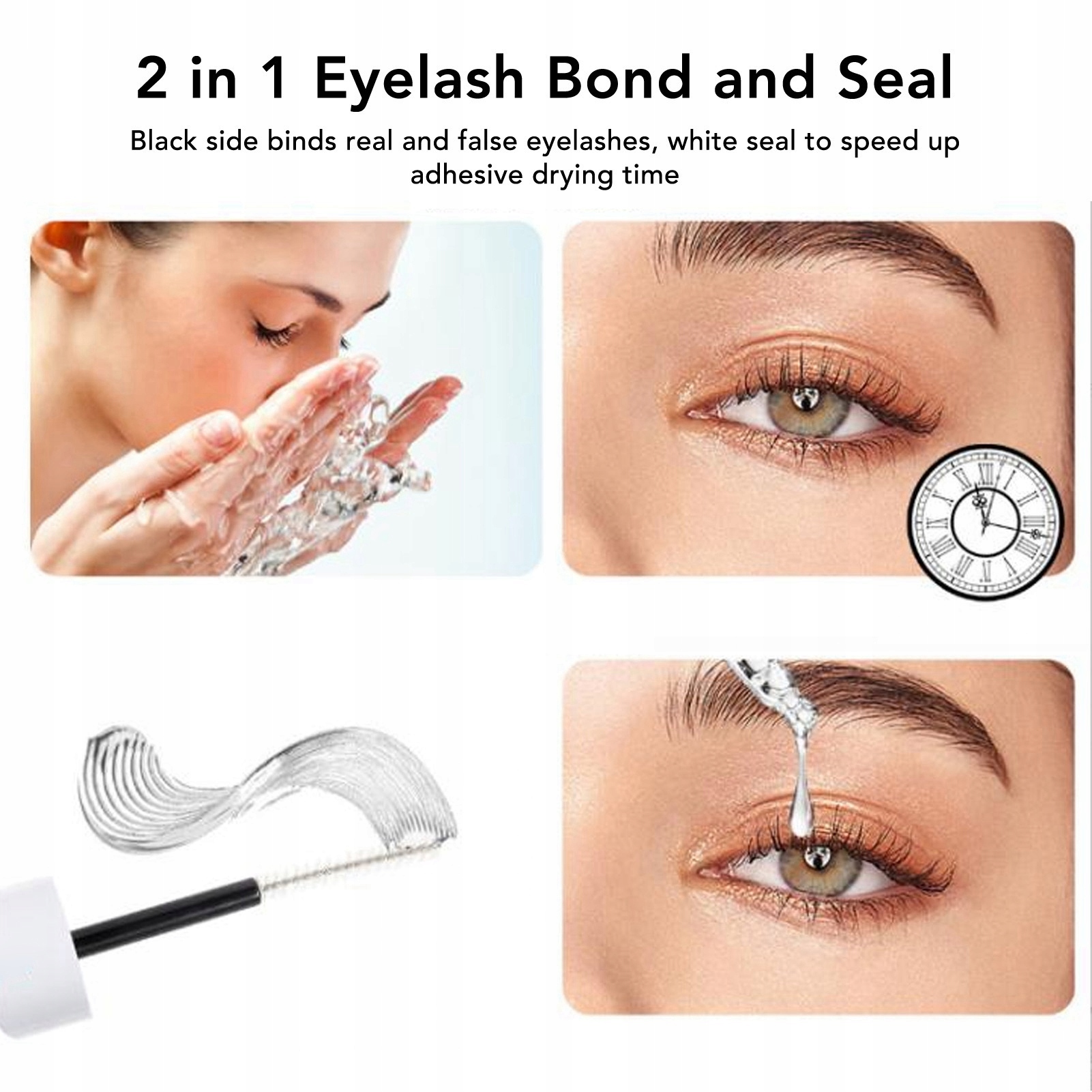 2 в 1 Клей для ресниц: черная связь с настоящими и накладными ресницами, белый герметизирующий слой, ускоряет время высыхания клея, улучшает ощущения от ношения накладных ресниц.
