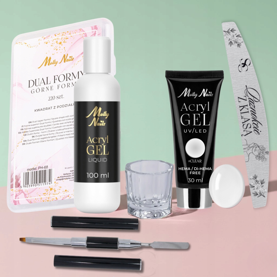 Molly Nails Набор для наращивания ногтей акриловым гелем в прозрачном тюбике, 30 мл