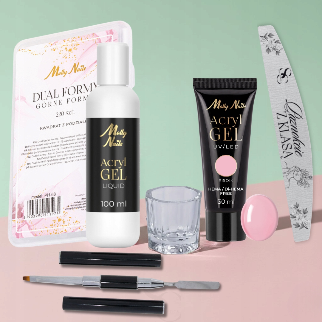 Полный набор для наращивания и наращивания ногтей методом акрилового геля/полигель, идеально подходящий для стилистов и новичков. Позволяет быстро создать прочную, естественную и эстетичную укладку с помощью молдов Dual Form или непосредственно на ногтевой пластине. Идеальный набор для салонной укладки.