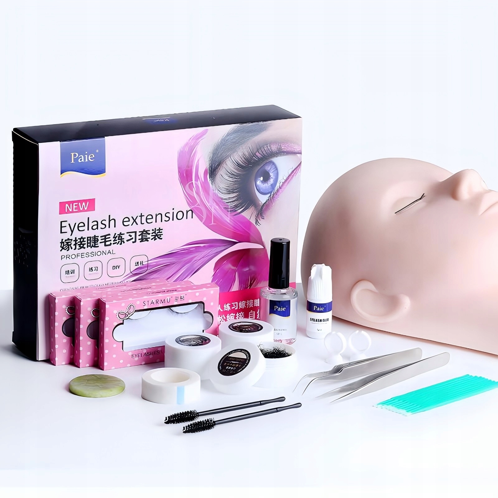 ღ) A замечательный набор для наращивания ресниц для начинающих для занятий на голове манекена.