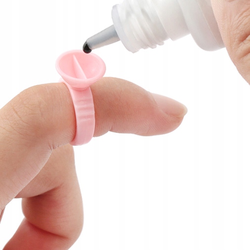Клеевое кольцо с регулируемой окружностью. Он хорошо работает как подставка для клея, поэтому вы можете легко его дозировать. Это очень удобное решение, поскольку не нужно каждый раз тянуться за флакончиком с клеем – достаточно капнуть каплю на палец.