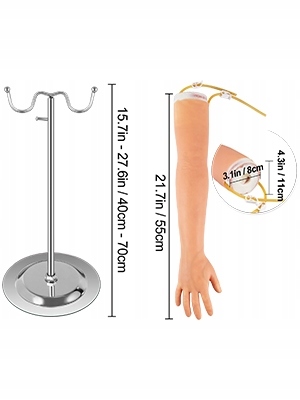 Инструкционная рука для внутривенных вливаний была тщательно разработана, чтобы имитировать человеческую руку, что обеспечивает реалистичный опыт внутривенных тренировок.
