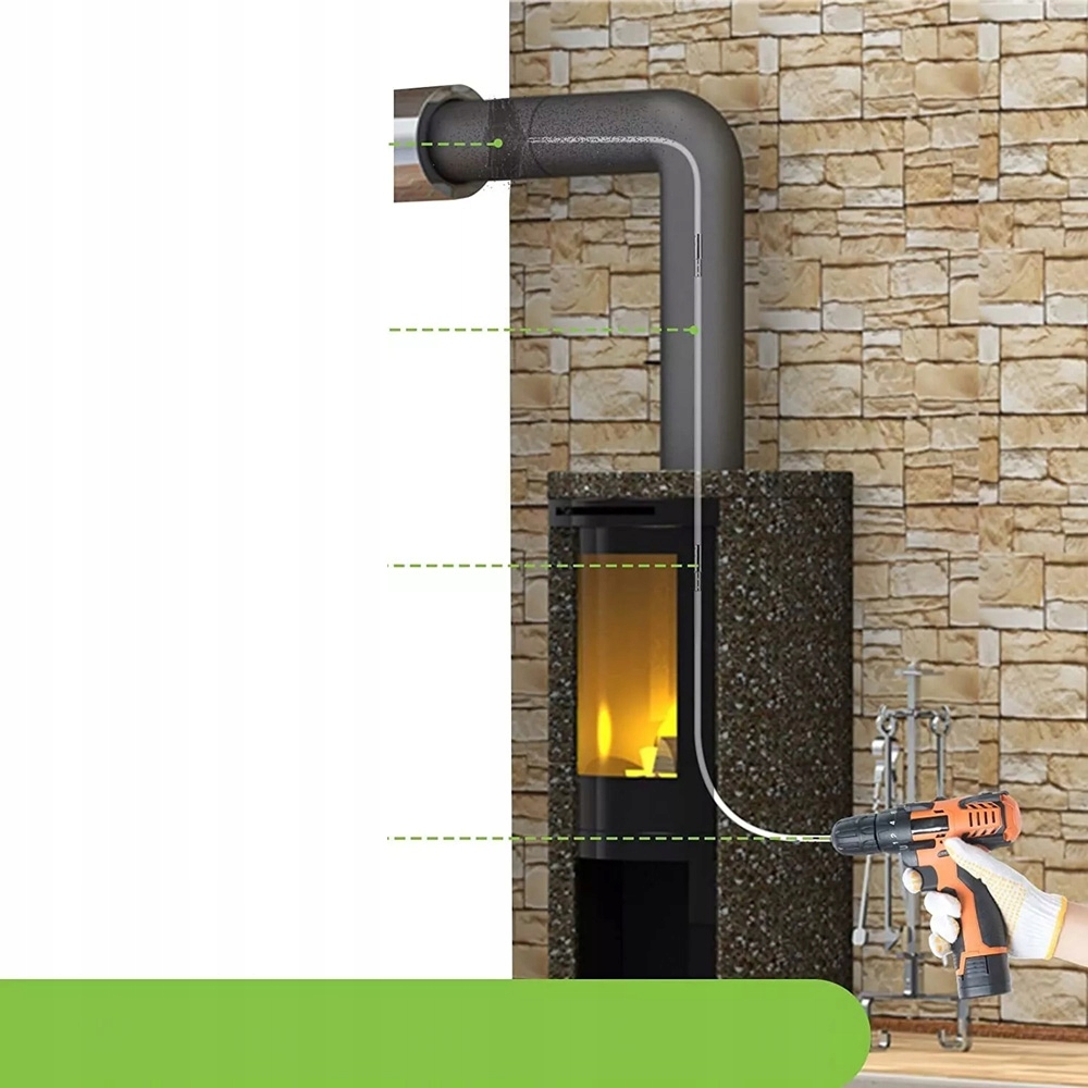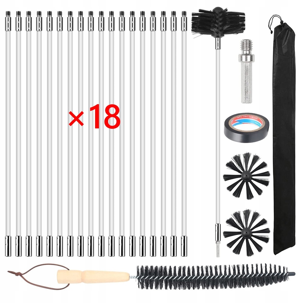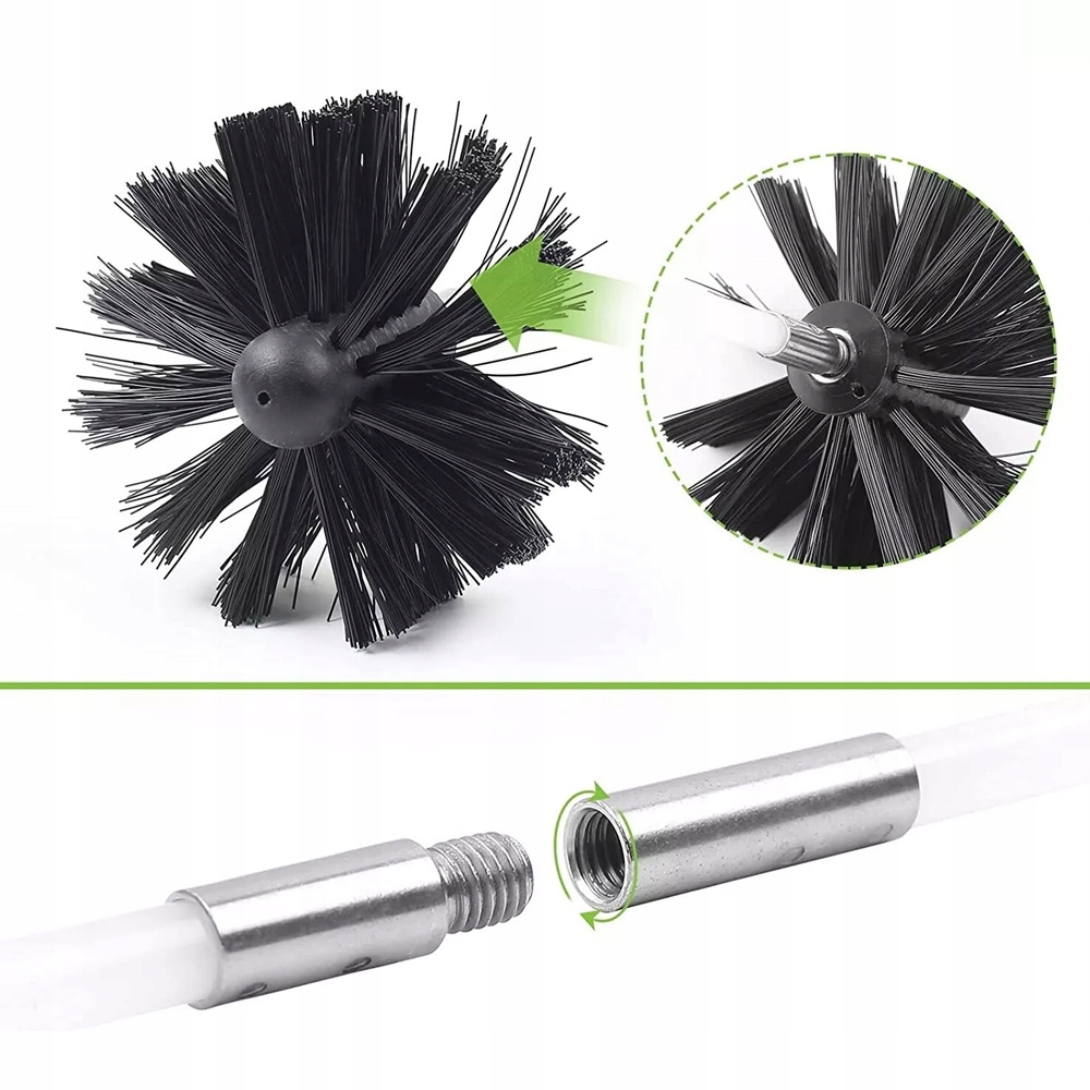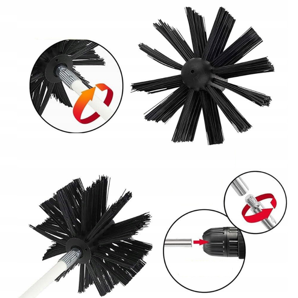Каминные щетки содержат две высококачественные синтетические головки и гибкие стержни до 7,38 м