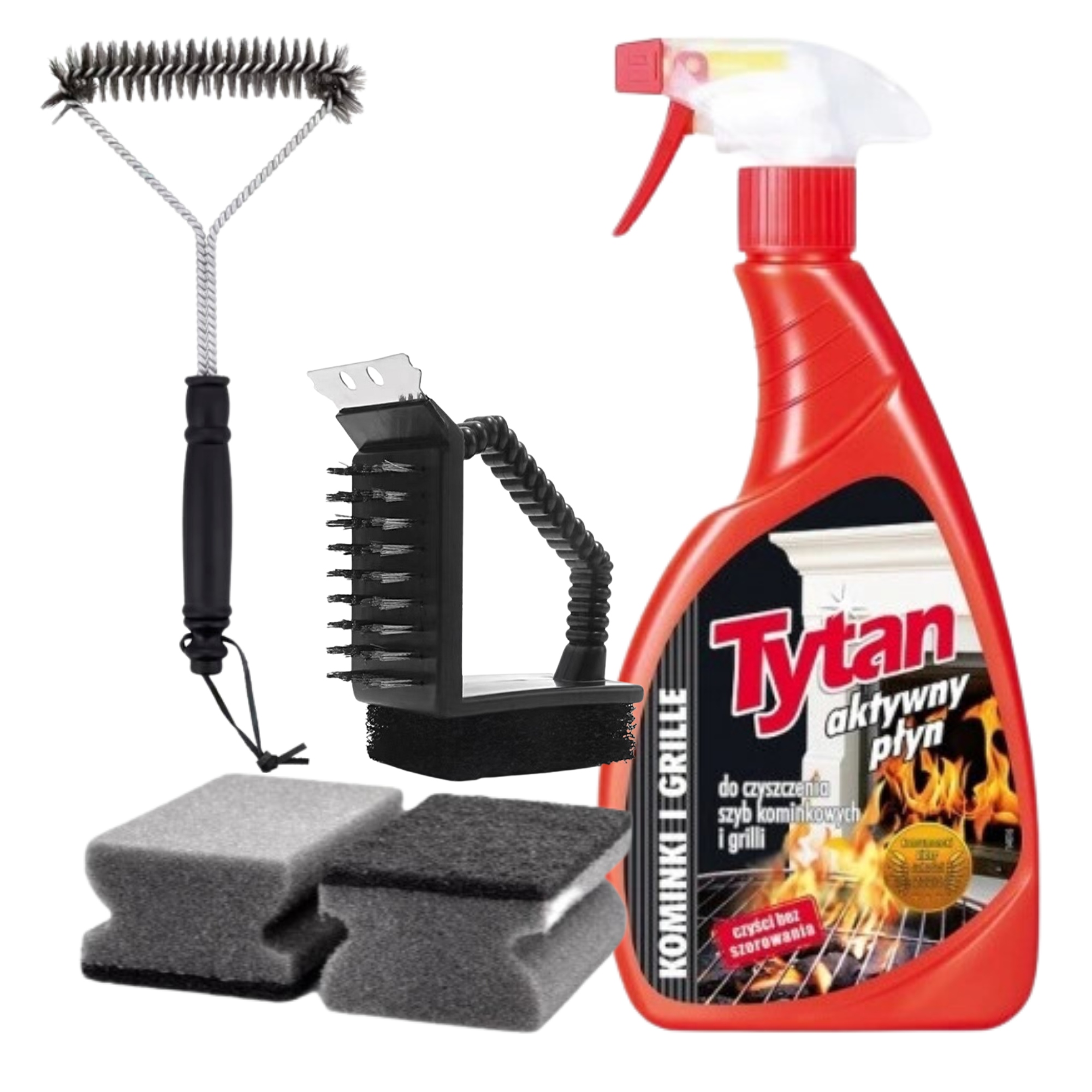 НАБІР ДЛЯ ОЧИЩЕННЯ ГРИЛЯ РІДКА ТИТАНОВА ЩІТКА ГУБКА