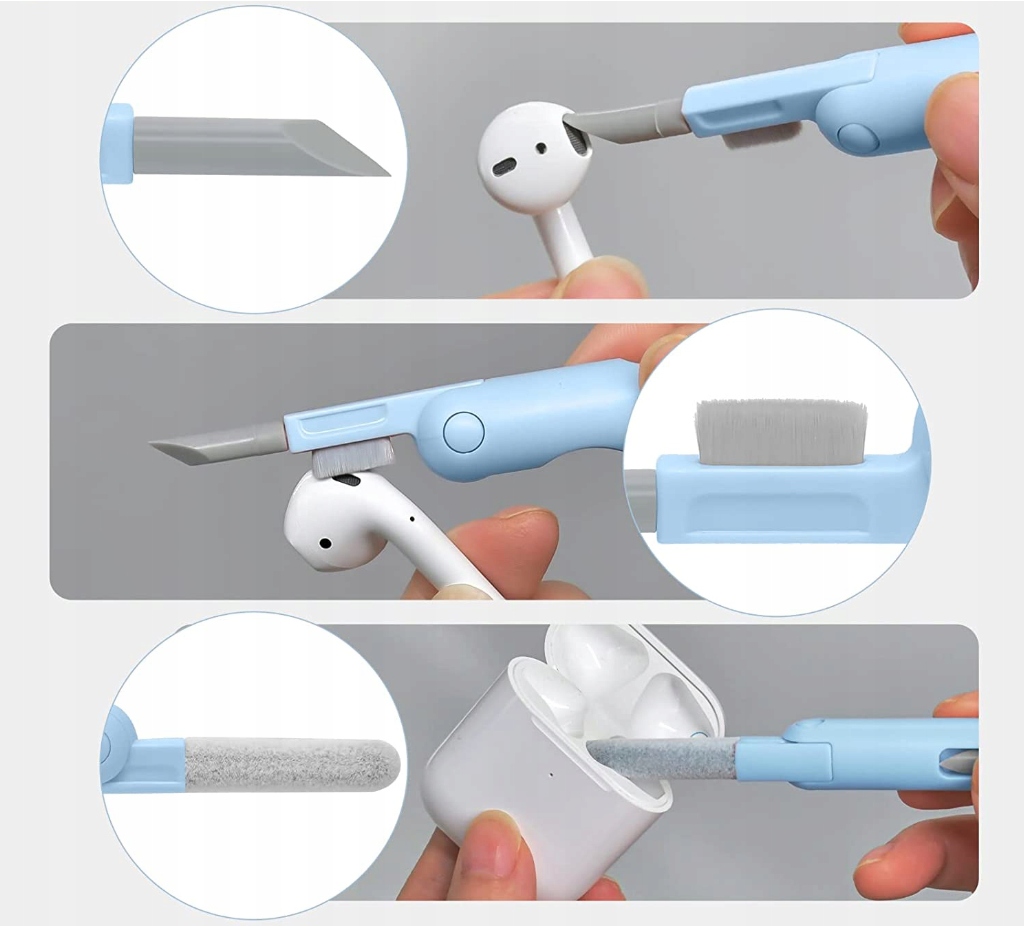 СКЛАДНАЯ РУЧКА ДЛЯ ЧИСТКИ НАУШНИКОВ - весь комплект спрятан в основной контейнер. При использовании наушников вы можете содержать их в чистоте благодаря прилагаемой ручке 3-в-1.