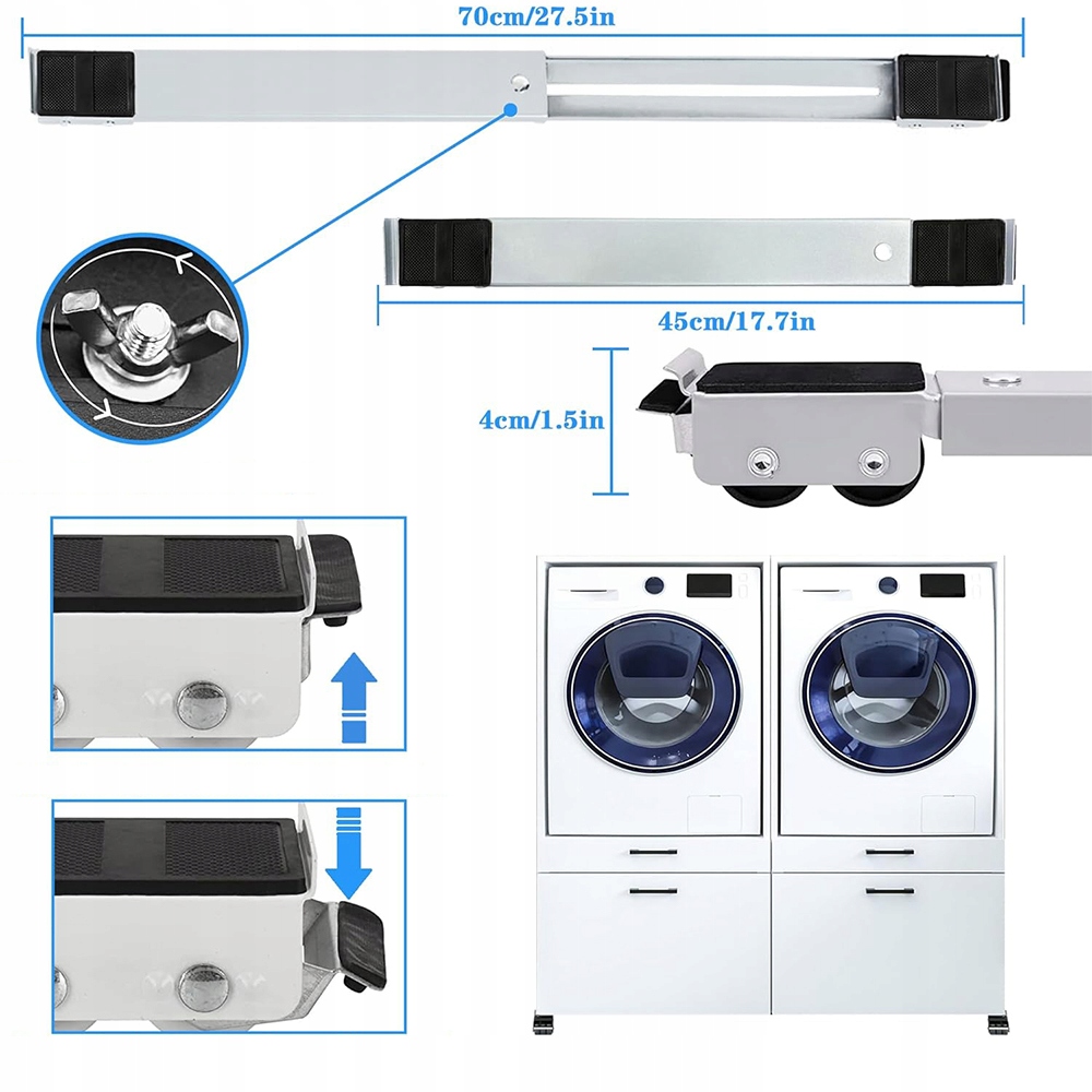 - Тормоза расположены на одном конце колес стиральной машины, чтобы уменьшить и предотвратить скольжение или раскачивание стиральной машины и другой мебели, повышая устойчивость и безопасность роликов основания стиральной машины.