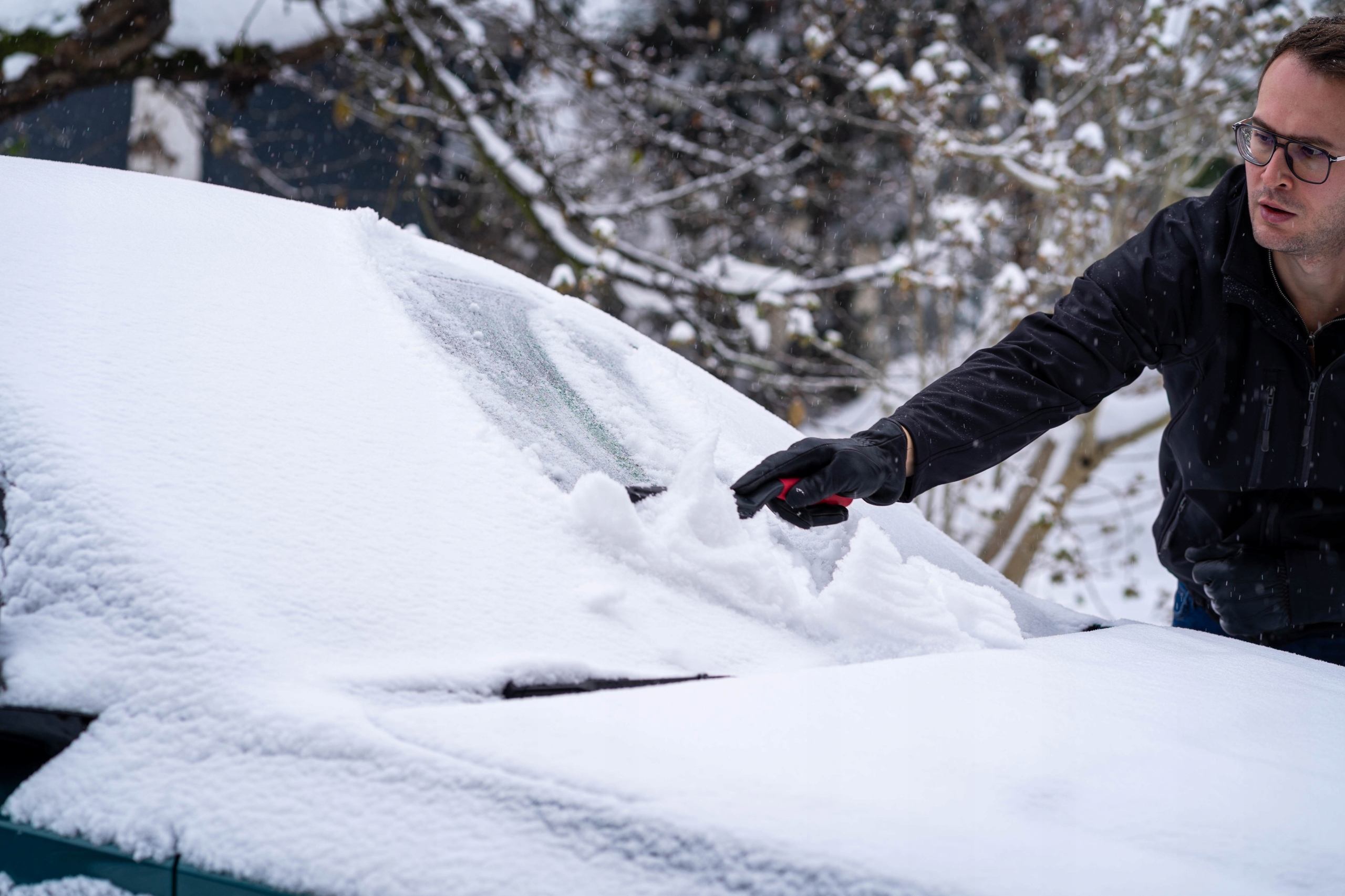 - Используйте скребок, чтобы аккуратно удалить лед с окон.