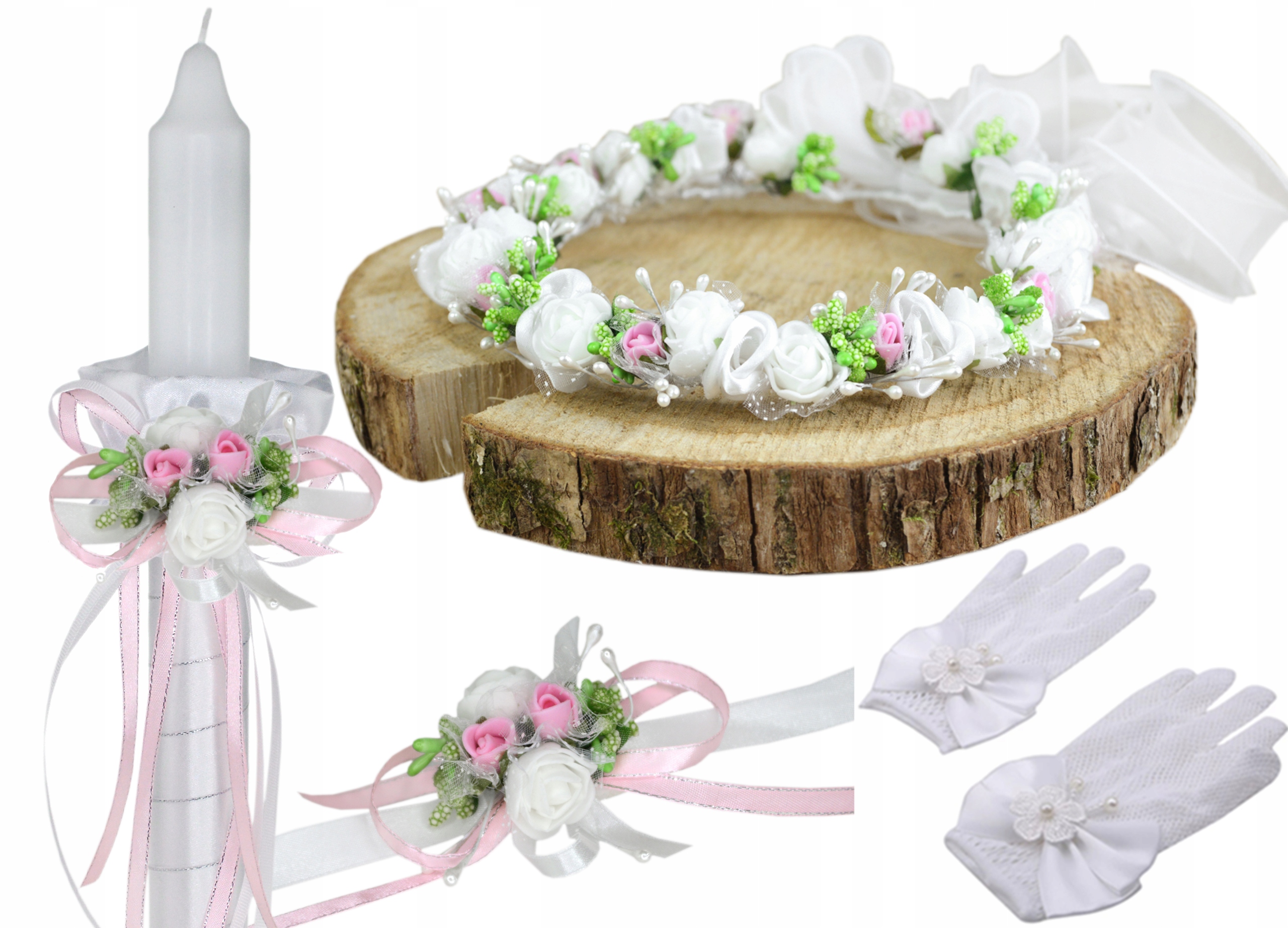 НАБІР ДЛЯ ПРИЧАСТЯ, ВІНОК, СВІЧКА, РУКАВИЧКИ, ПРИКРАСА 2