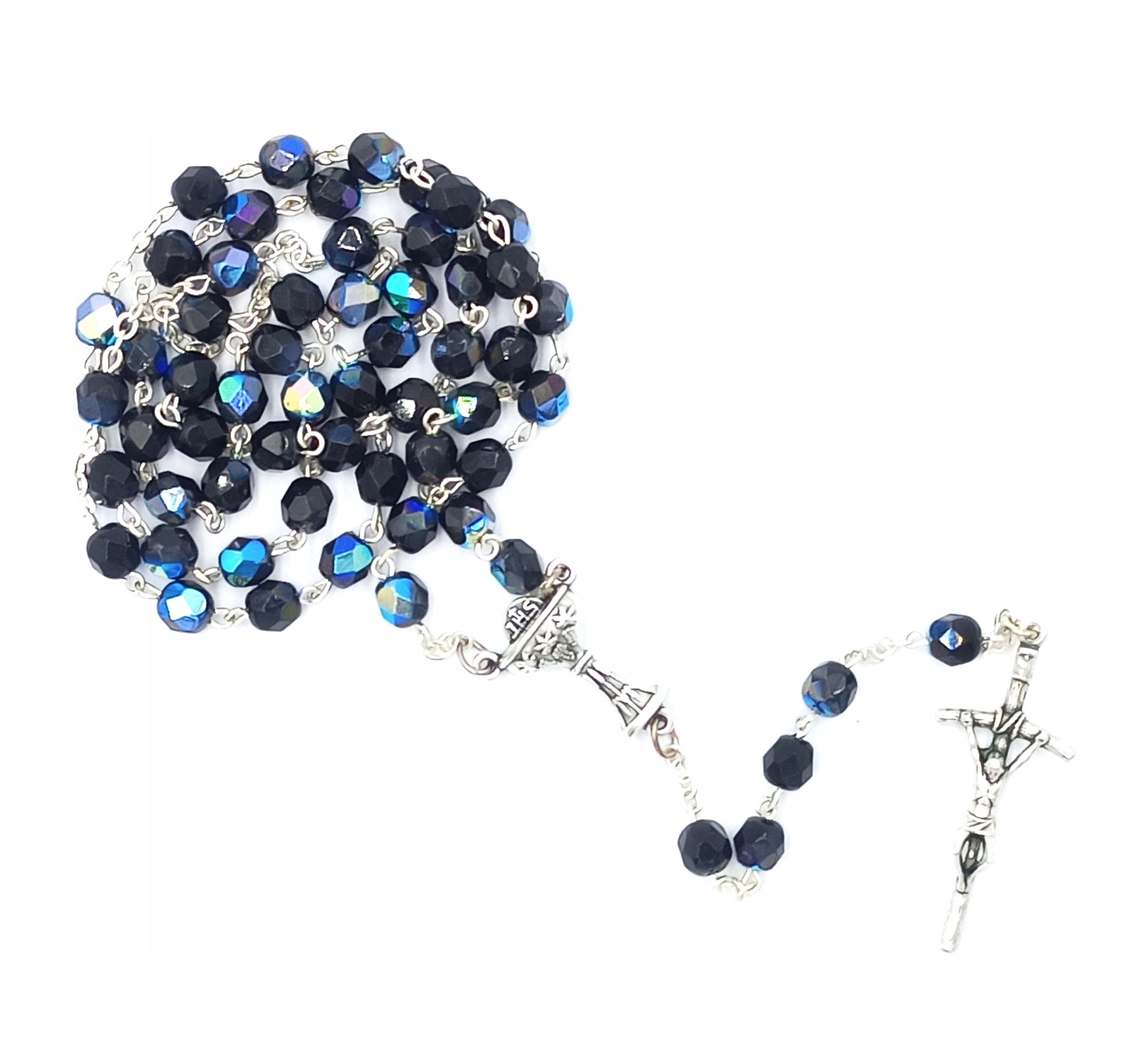 Чётки Первое причастие для мальчика. Бусы из граненых бусин с крестиком. Иоанн Павел II.