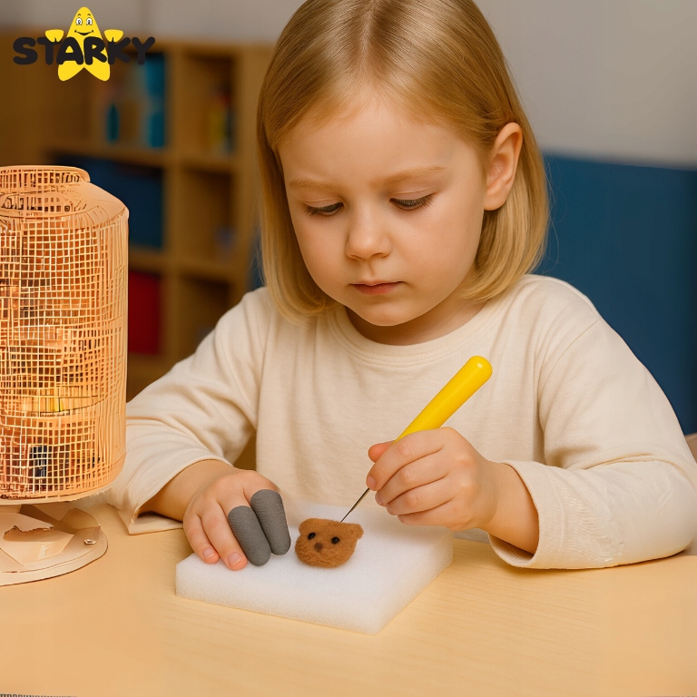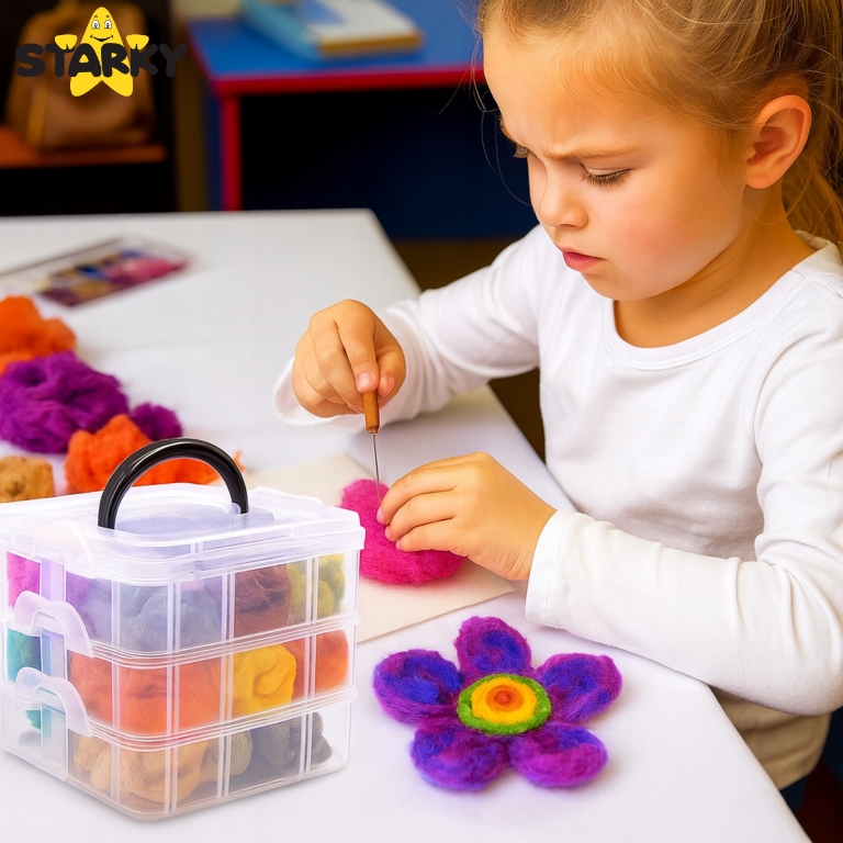 Вам не нужно беспокоиться об отсутствии основных инструментов. Наш набор включает в себя все, что вам нужно, чтобы начать играть: от игл до коврика из пены, ножниц и деревянную ручку .
