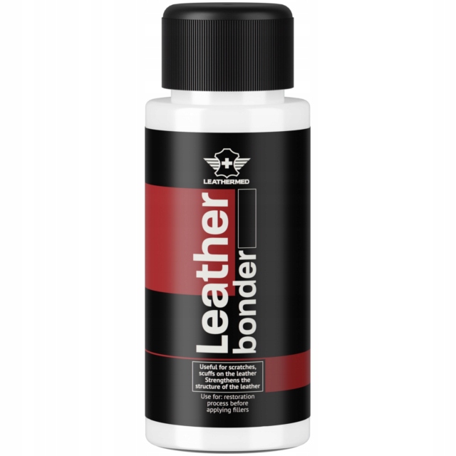 Leather Bonder – средство, предназначенное для укрепления натуральной кожи, подвергавшейся интенсивному использованию – ношению на лице (место без краски и лака). Продукт глубоко проникает в кожу, связывая рыхлые и ослабленные волокна, образуя так называемый «кожаный пух», который ощущается на ощупь. Нанесите два-три тонких слоя на каждый поврежденный участок с помощью губки. После нанесения слоя продукта каждый раз сушите поверхность.