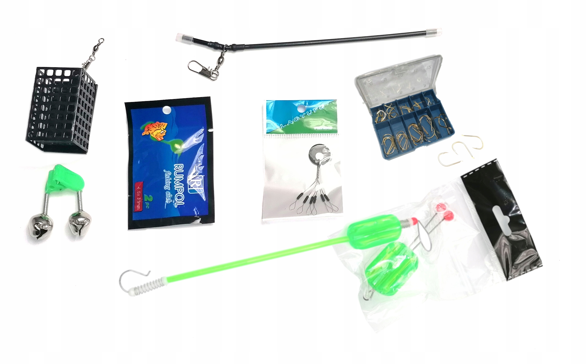 Набор с универсальной катушкой и телескопической удочкой из прочных стеклокомпозитных материалов.