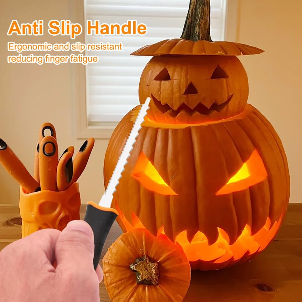 Эргономичные противоскользящие ручки оранжевого и черного цветов обеспечивают надежный захват. Набор позволяет создавать реалистичные 3D-детали, такие как глаза, зубы или волосы, придавая вашим тыквам уникальный характер.