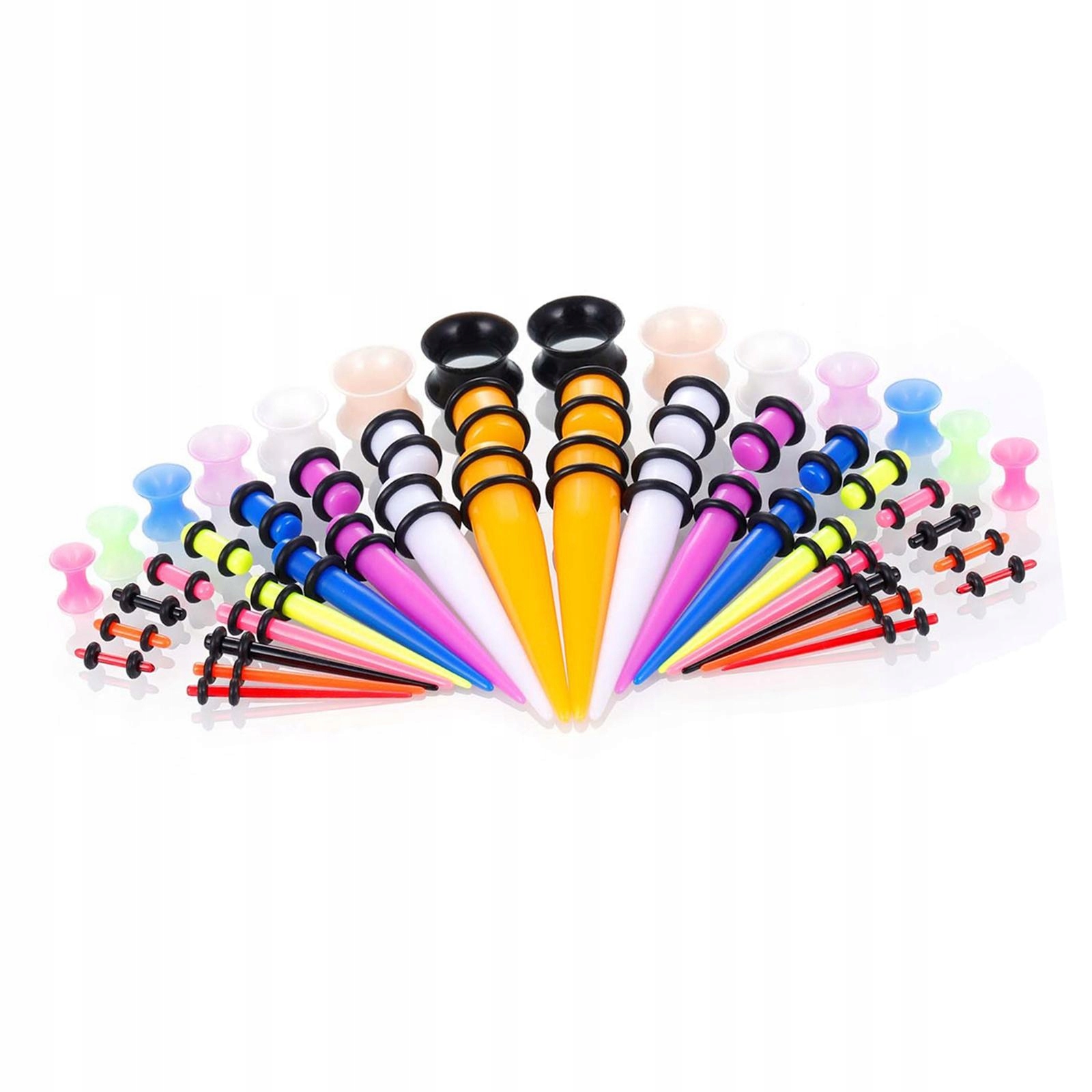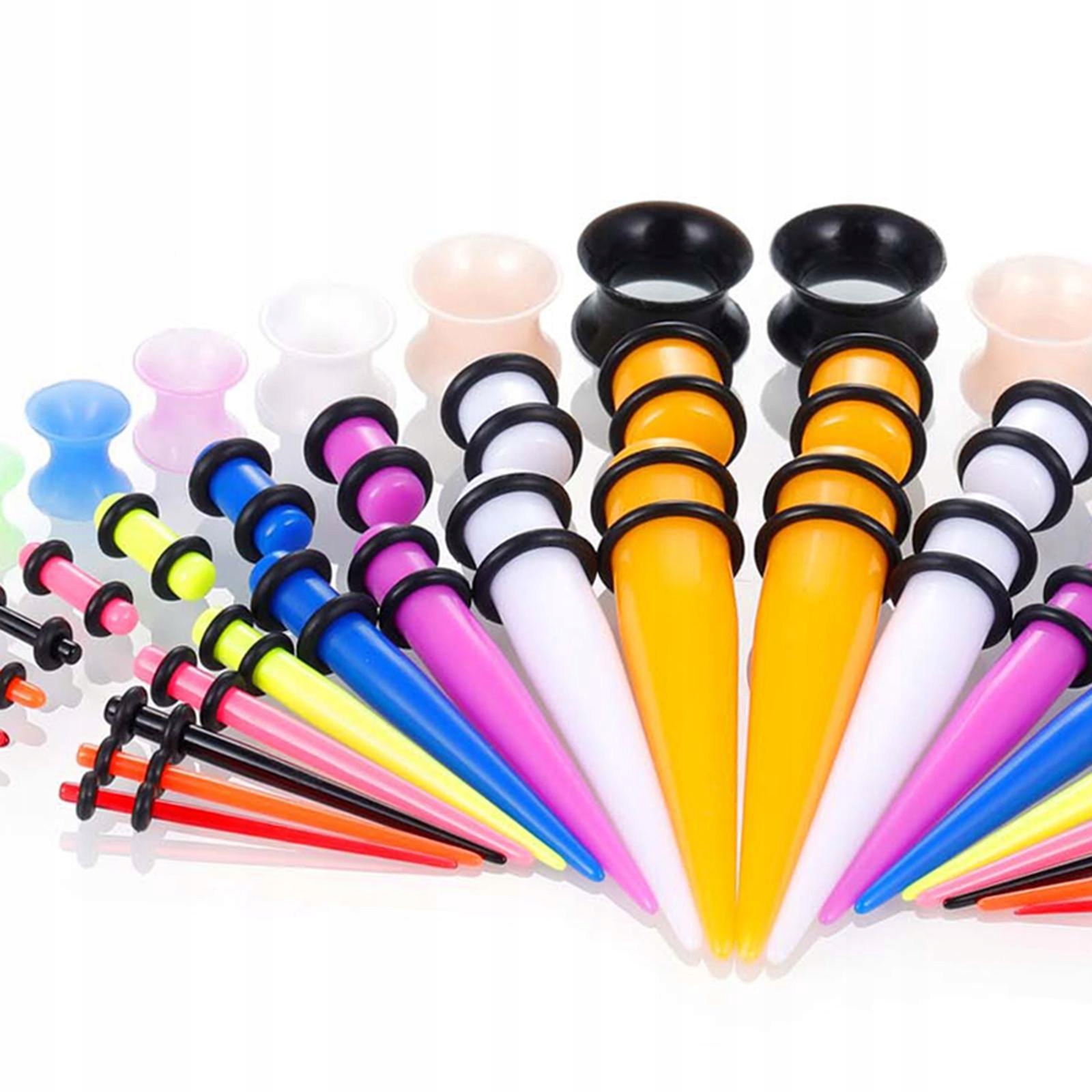 18 акриловых конусов: 1,6 мм (14G), 2 мм ( 12G), 2,4 мм (10G), 3,2 мм (8G), 4 мм (6G), 5 мм (4G), 6 мм (2G), 8 мм (0G), 10 мм (00G). 9 размеров, по два на каждый размер.