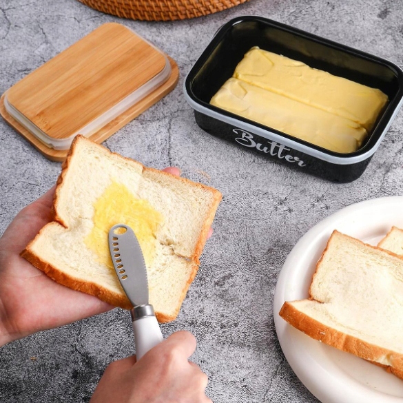 Улучшенная масленка с крышкой: вам не придется искать нож, когда вы хотите использовать масленку, масленка с крышкой оснащена многофункциональным ножом для масла, а крышка масленки идеально подходит к ножу для масла