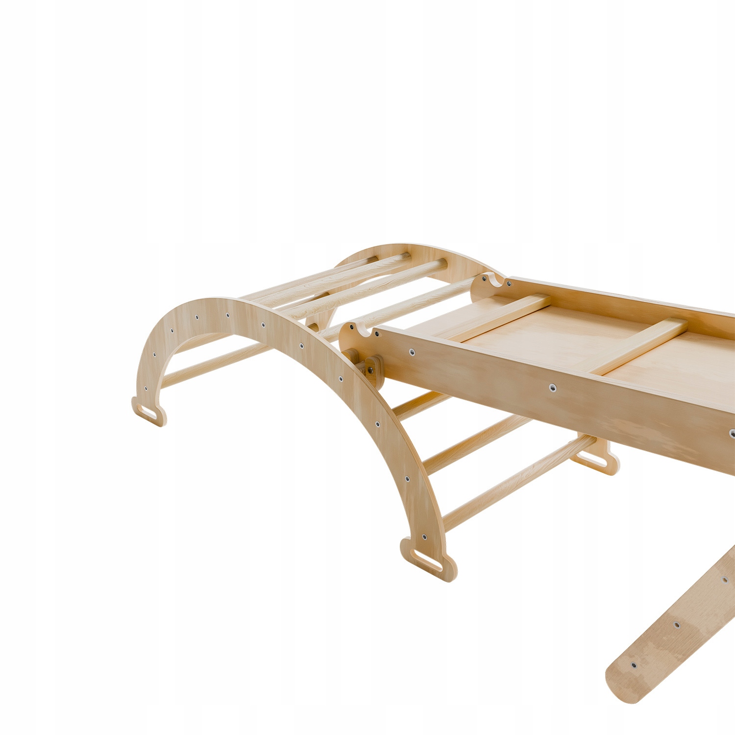 - Богатый набор - треугольник для лазания, арка, горка, доска, подушка