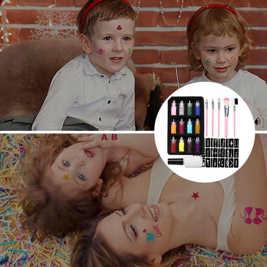 НАБІР ДЛЯ ТАТУЮВАНЬ З БЛИСКОМ 87 ШАБЛОНІВ 12 ПОДАРУНОК З БЛИСКОМ
